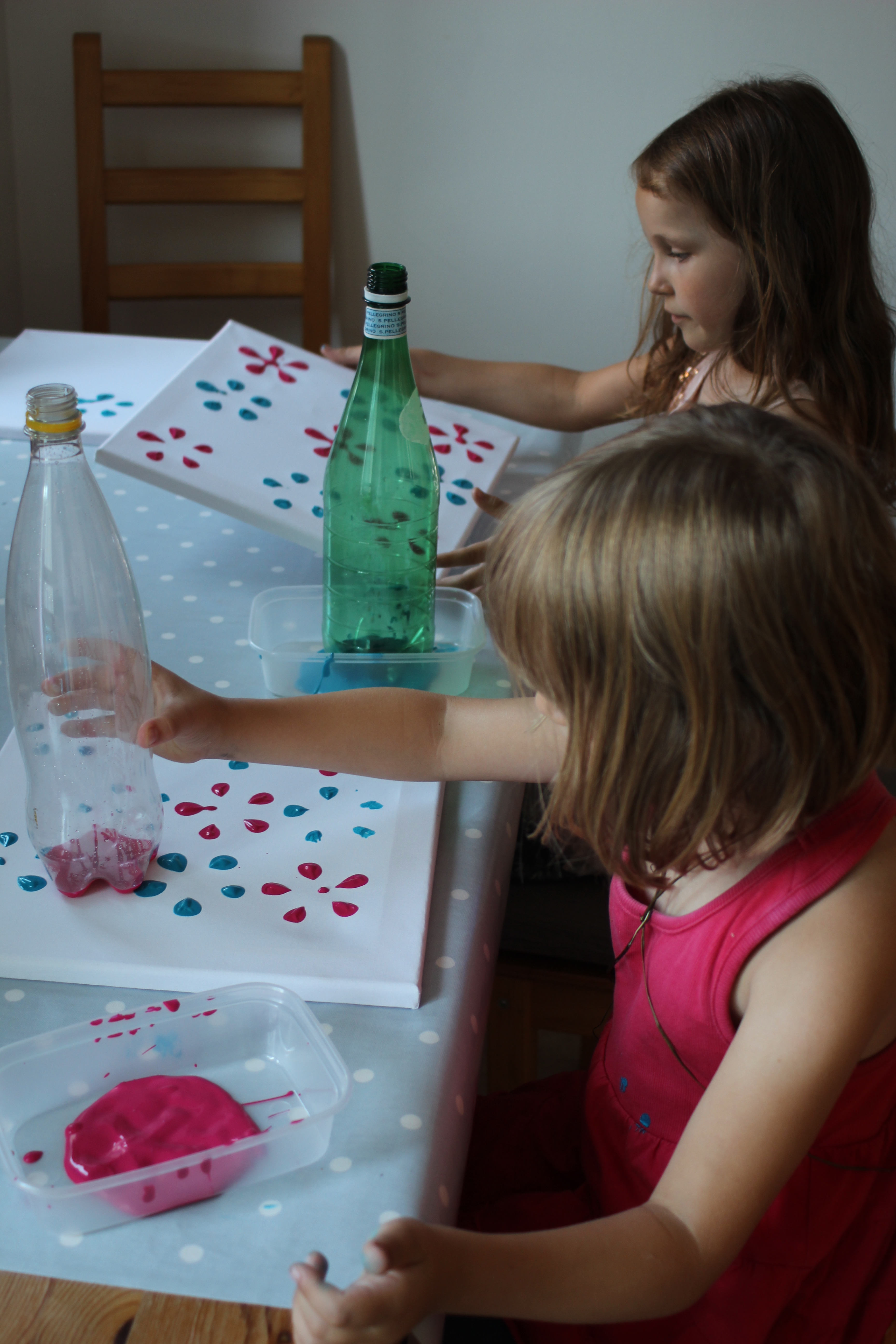 Looking for something fun to do with the kids? – Why not try this? Bottle ‘blossom’ printing – quick, easy, fun and a great way to use those empty tonic water bottles…