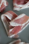 Preheat the oven to 190 degrees and put the sausages in a baking dish to cook in the oven – for about 25 minutes. Meanwhile, make your Bacon Hearts.