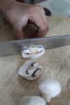 While the bacon and sausages are cooking, slice your mushrooms and saute them in a little butter, in a small pan over a low heat. If you cover them with a lid, you can leave them to gently sweat, just stirring them occasionally.
