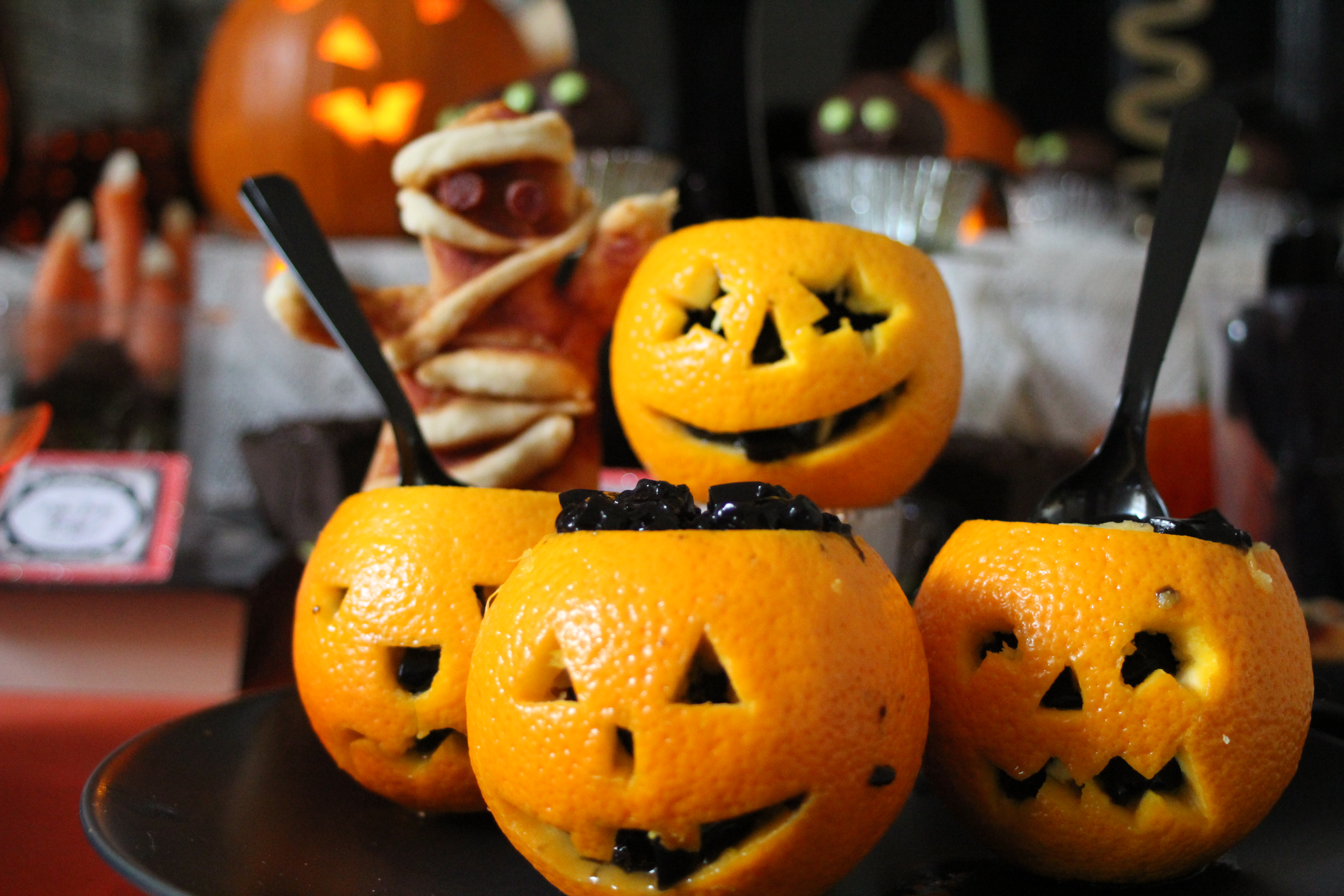 Our party guests couldn’t wait to dive into these fruity ‘pumpkins’ with their jet-black filling. They’re very easy to do – here’s how.